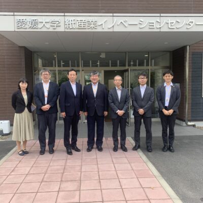 令和7年9月9日(火)、経済産業省から大臣官房の佐々木啓介 総括審議官、吉田健一郎 四国経済産業局長ら計4名が、紙産業イノベーションセンターの視察のため来訪されました。 当日は、内村浩美センター長が、製品サンプルを交えながら紙産業の現状と当センターの活動概要、そして今後の展望について説明を行いました。特に、研究...