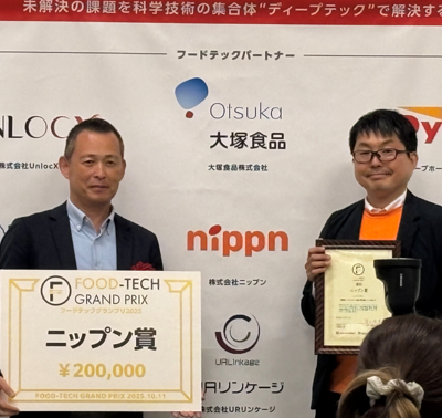 10/11 秀野 晃大講師が『フードテックグランプリ2025 ニップン賞』を受賞しました。
