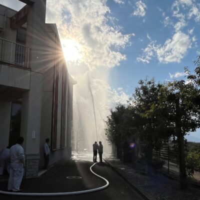 令和6年11月27日(水)、愛媛県紙産業技術センター様と合同で消防訓練を実施しました。教職員・学生一同が参加し避難訓練及び消火訓練を行いました。 避難訓練 今回は、技術センターより火災が発生したことを想定し、避難訓練を行いました。避難誘導係による「火事です!避難してください!」との呼びかけを合図に静...
